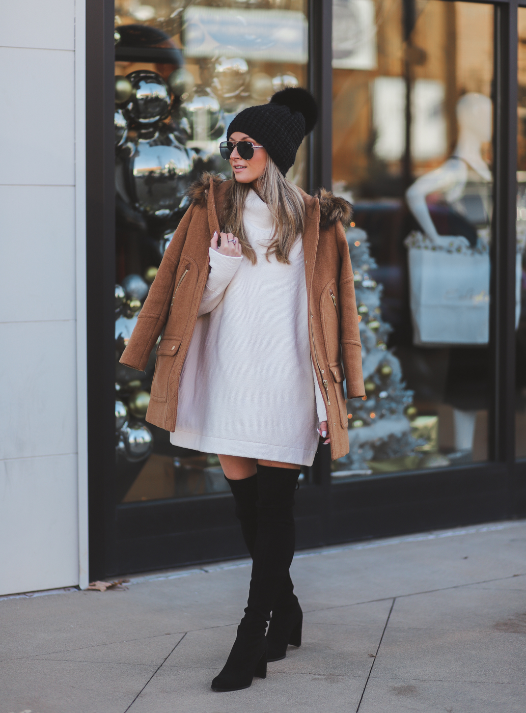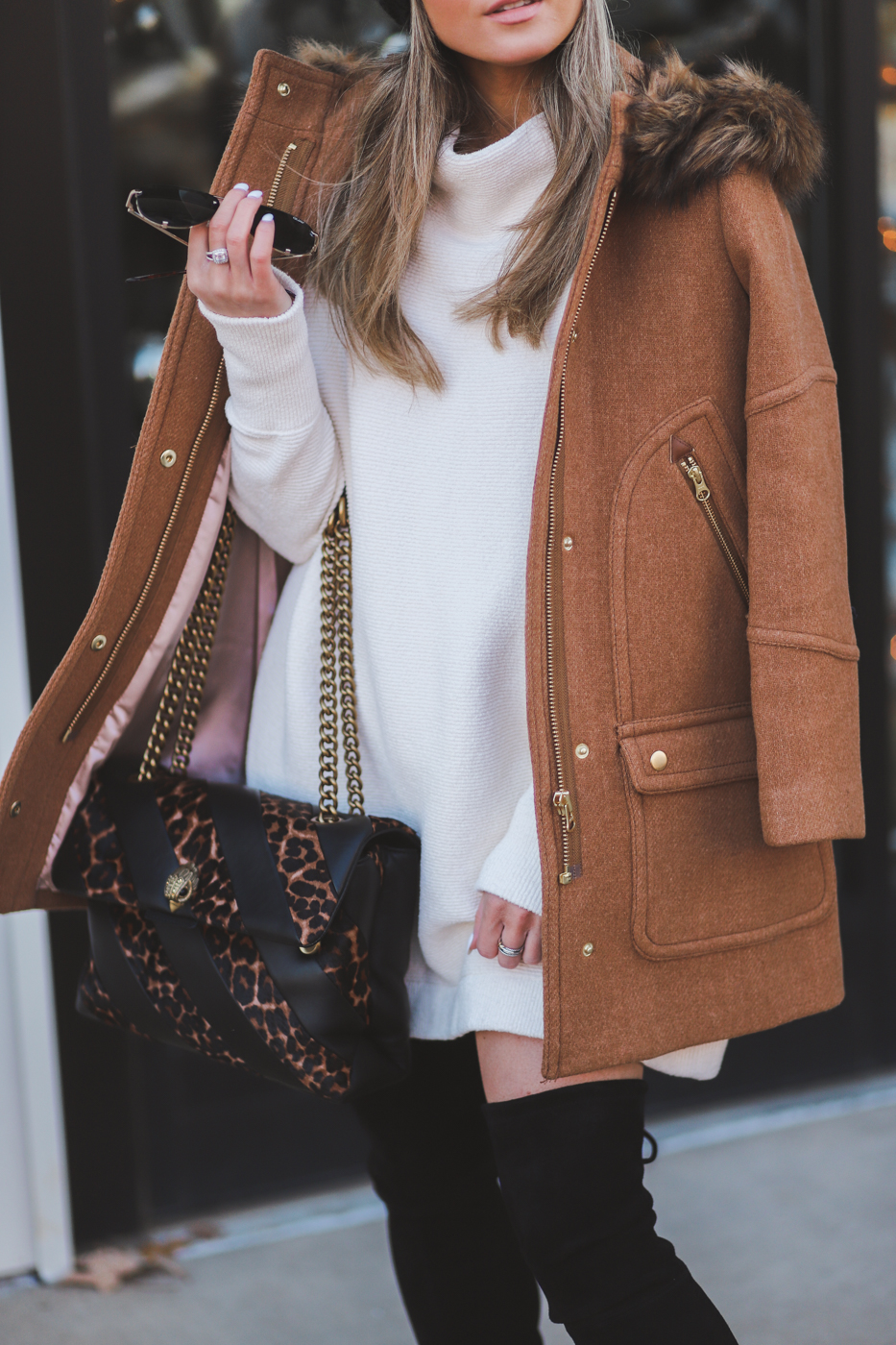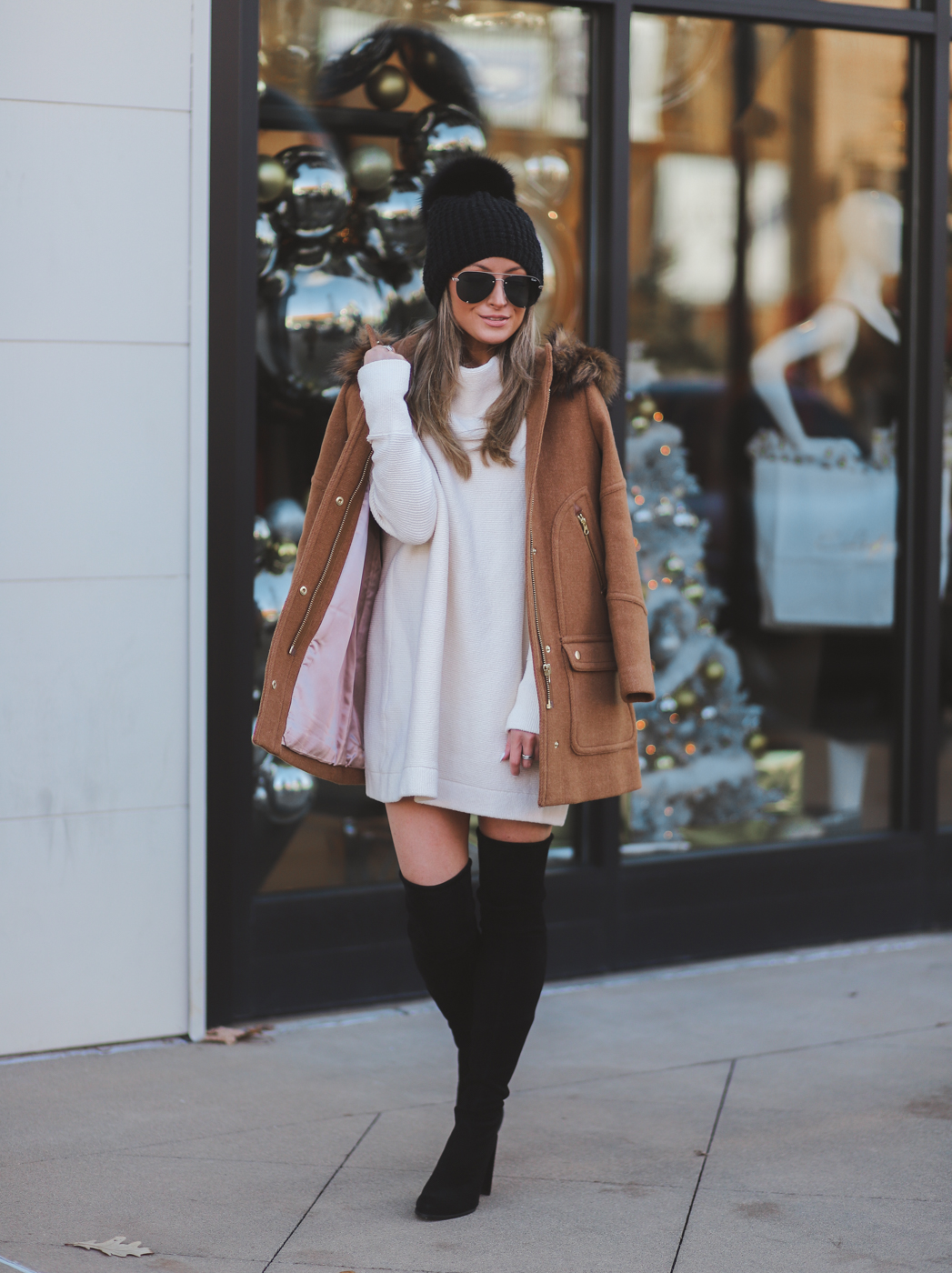 This tunic has been around for a couple years now, and it’s still a favorite of mine. Various retailers have various colors so I linked a couple (the cream is harder to find), in addition to a couple other tunics from the same brand also on sale. I have mine on in a small and could have def gone up to a medium to wear it was a mini. It does run short if you wear it as a dress so I would definitely go up 2-3 sizes. I’m only 5’2″ so just keep that in mind! It also looks great with leggings!My coat is a must-have! I can’t believe I didn’t buy it in years past. I always see these pretty wool coats but never take the plunge, because many times they are still pricey on sale. BUT, it is so worth it, and right now it’s 50% off! Which makes a hugeee difference in the price. Def the time to buy! I’m wearing a 00P and it fits well – a lot of the coats by this brand tend to run large.My boots were an end-of-year sale splurge for me last year. Every year they go on sale around Thanksgiving and Christmas so it’s definitely the time to buy if you want them significantly cheaper. They came out with a newer version of the style I have on so I’ve linked it on sale two places (tts)!